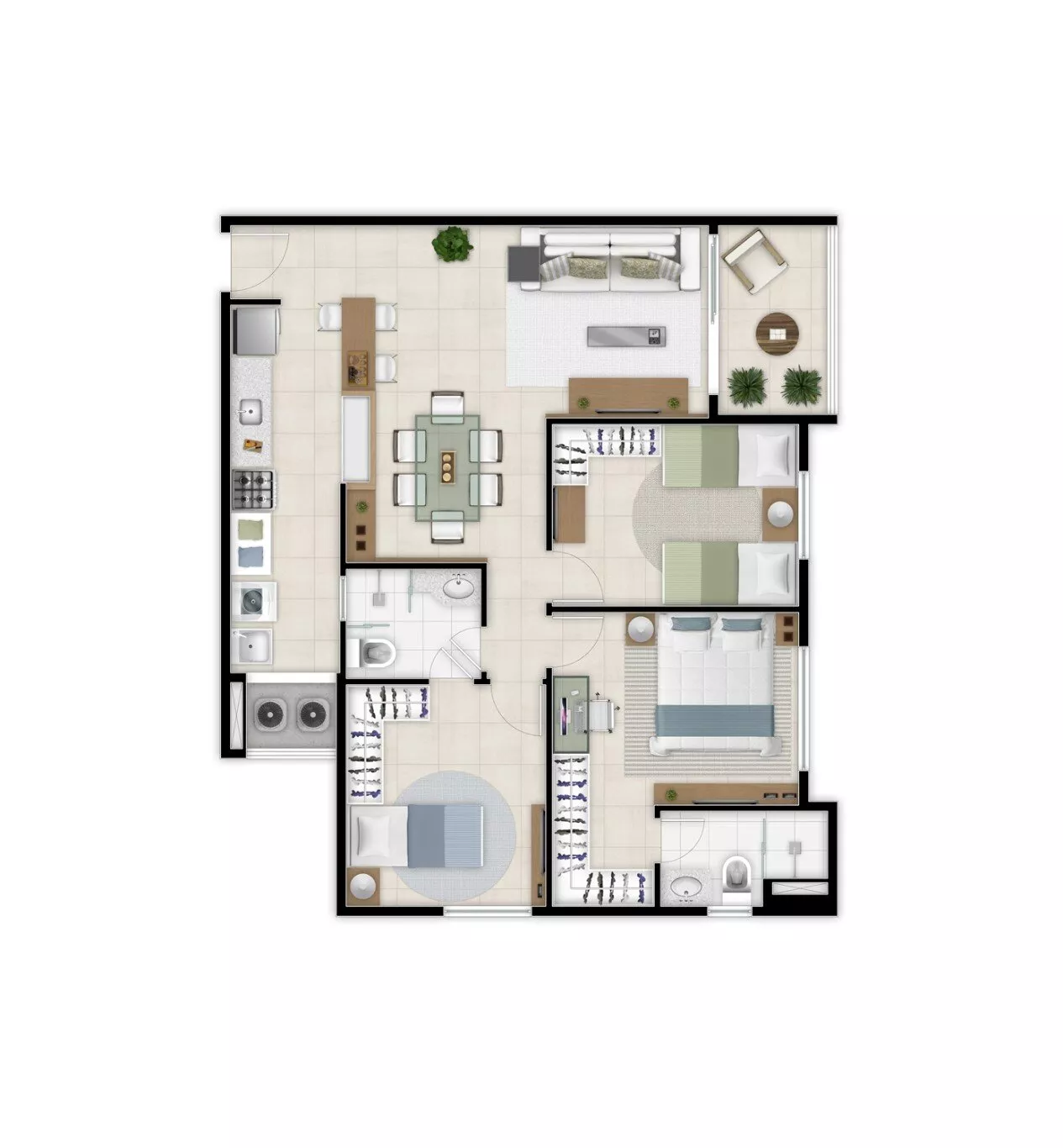 📌 3 quartos (sendo 2 suítes)